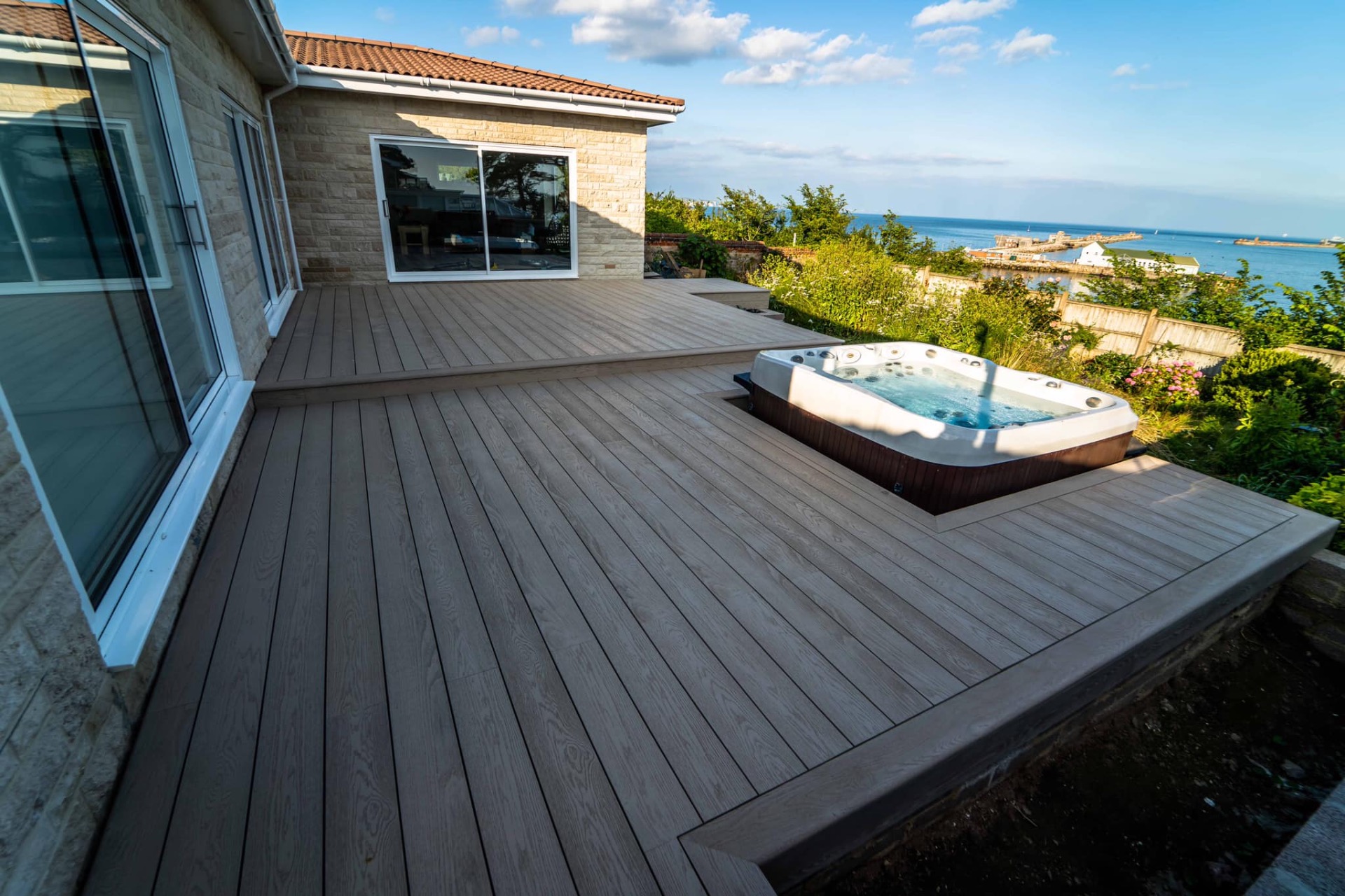 Finish off this fantastic view with a decking solution which brings style to your garden. Millboard is the leading wood-look decking and cladding, enhancing outdoor spaces with enduring distinction. This anti-slip material is long lasting and is produced using recycled materials.